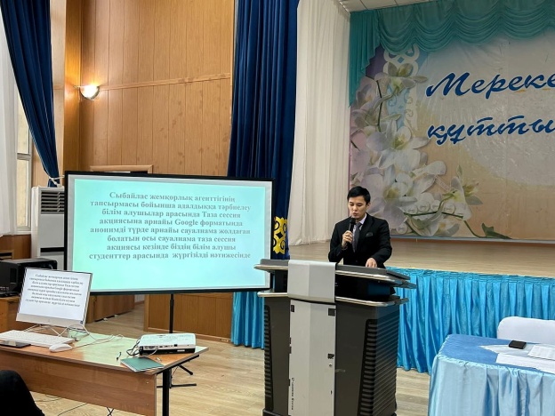 - 3-4 курс студенттерінің арнайы пән сабақтарының білімін бағалау және мемлекеттік емтиханға дайындық графигімен таныстыру (Оқу-өндірістік жұмыстар жөніндегі директор орынбасары К.И. Сапарғалиева)