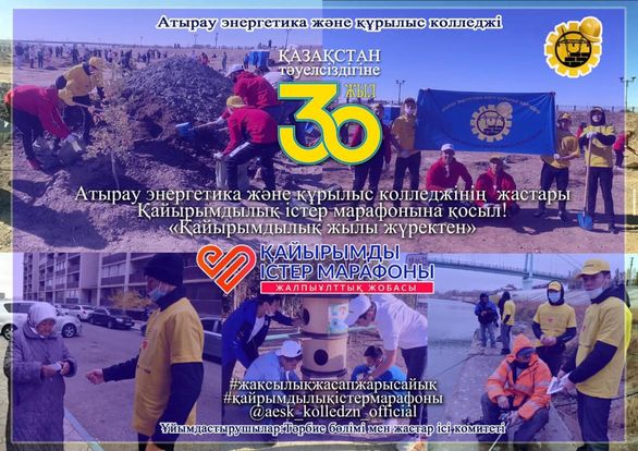 Қазақстан Республикасының Тәуәлсіздігінің 30 жылдығына орай және Қайырымды істер марафоны жалпы ұлттық жобасы аясында Атырау энергетика және құрылыс колледжінің білімді және шығармашыл жастарын Қайырымдылық істер марафоны қатынасуға шақырамыз