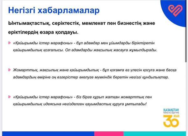 «Қайырымды істер марафоны» – біз бірге құрып жатқан жомарттық пен қайырымдылық идеясына негізделген қауымдастық құруға ұмтылады!