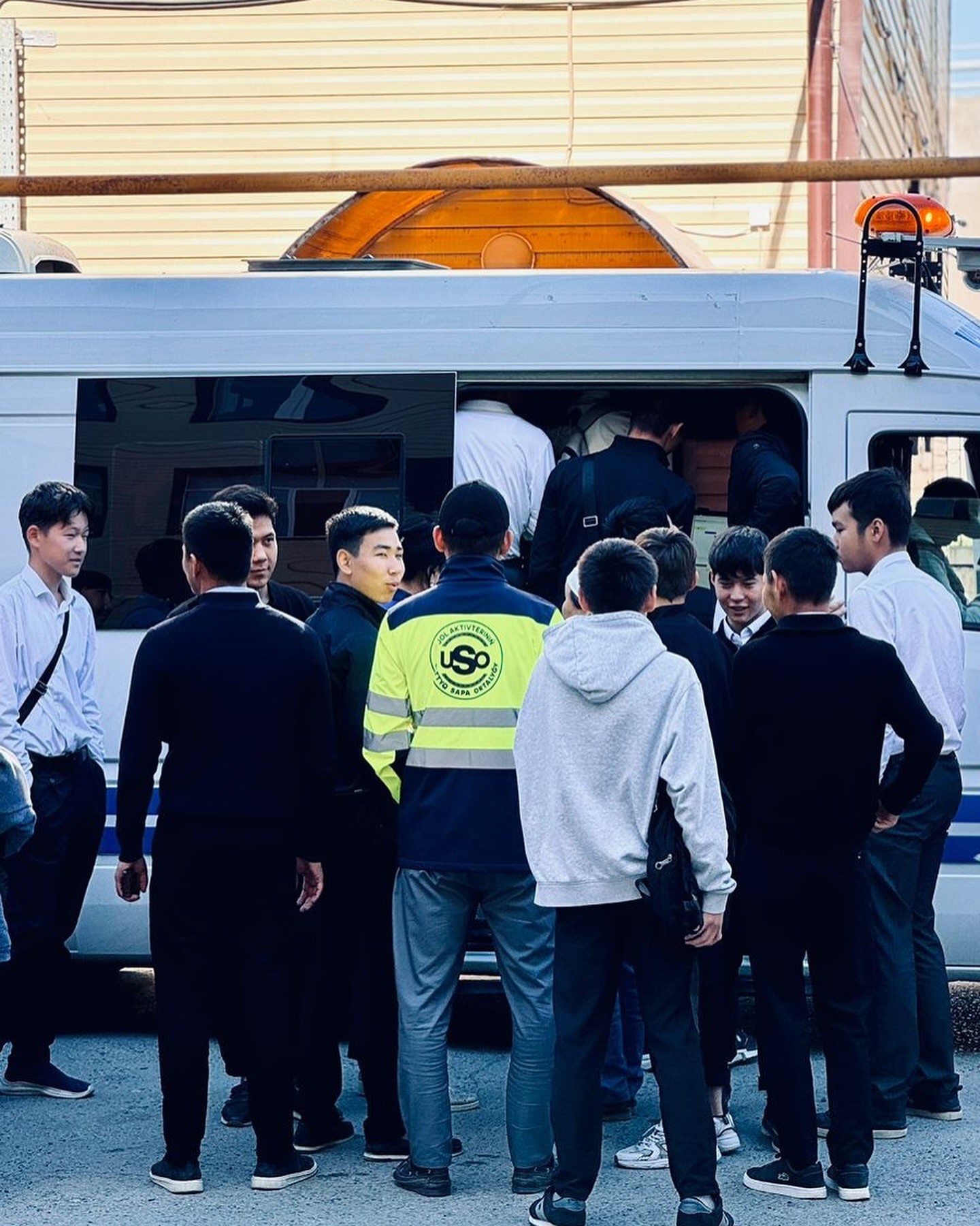 Студенттер ғимарат ауласында жылжымалы жол зертханасы орналасқан автокөлік қызметіне қызығушылық танытты. Жылжымалы зертхана арқылы құрылыс жұмыстары аяқталған жол телімдерінің, және жалпы пайдаланудағы автомобиль жолдарының сапасы тексеріледі екен.