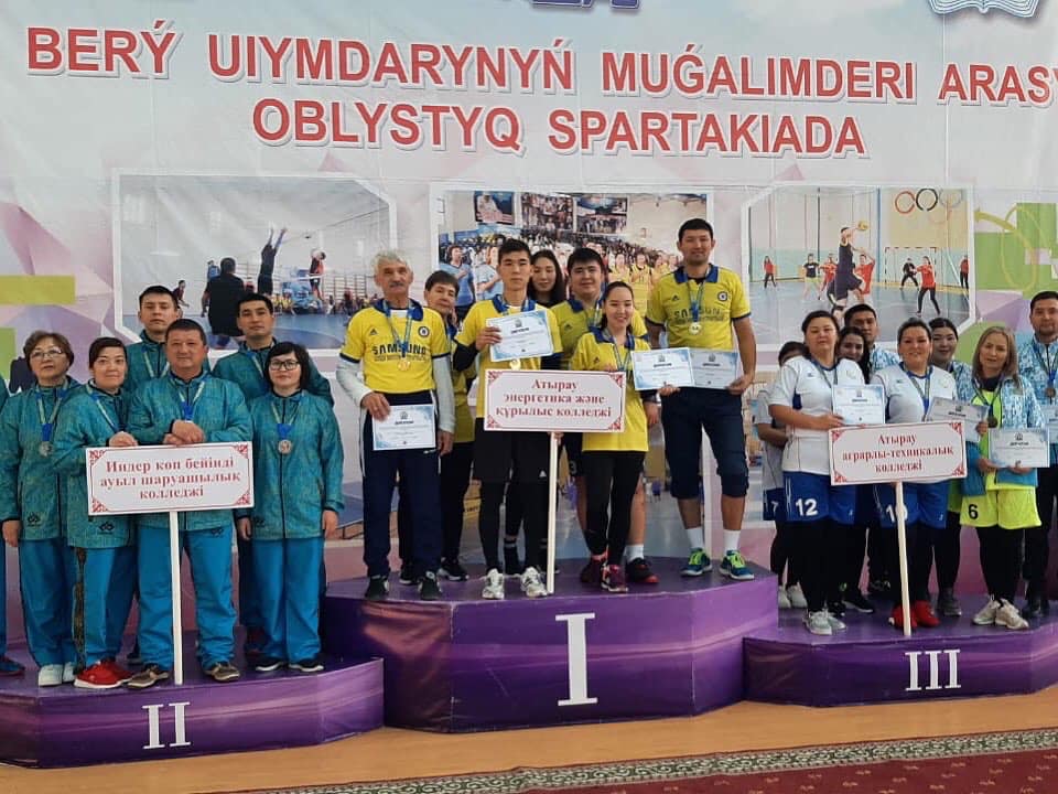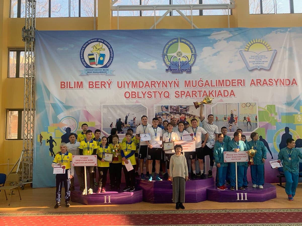 ➡️🆕Қазақстан Республикасының 30 жылдығына орай колледж және жоғарғы оқу орындарының оқытушылары арасында 2021 жылдың 23-29 қараша аралығында Атырау Облыстық Білім беру басқармасы Атырау аймақтық дене тәрбиесі және спортты дамыту орталығының күнитізбелік жоспарына сәйкес ✅Қазақстандық салалық білім және ғылым қызметкерлерінің Атырау облыстық ұйымымен бірлесіп өткізіліп жатқан, колледж оқытушыларының арасында облыстық спартакиадасы өткізілді. Қала, аудандардың колледж оқытушылары арасында бұқаралық спорттық шараларды дамыту және нығайту, салауатты өмір салтын насихаттау мақсатында ✅Колледж оқытушыларының облыстық спартакиадасына 13 команда қатысып барлығы 400 оқытушы спорттың 6 түрінен (баскетбол, волейбол, гандбол, шахмат, тоғызқұмалақ, үстел теннисінен) сынға түсті. Жарыс қортындысы бойынша жалпы командалық орынды: 2 орын Атырау энергетикалық және құрылыс колледжінің командасы иеленді.