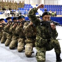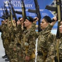 Қазақстан Республикасы Қорғаныс министрлігі Батыс өңірлік қолбасшылығының 41433 әскери бөлім қызметшілері қоян-қолтық ұрыс тәсілдерін студенттер мен көрермен назарына ұсынды.