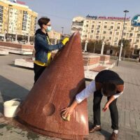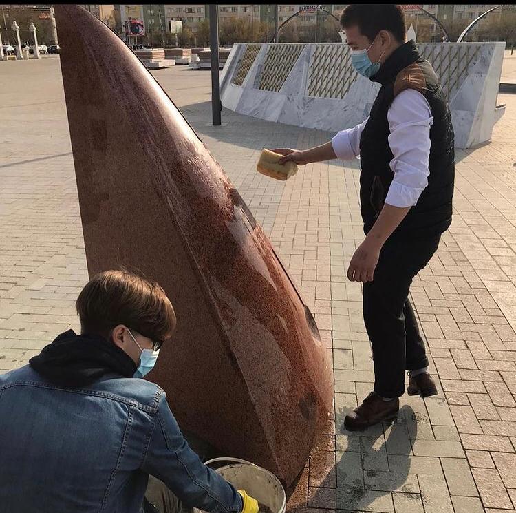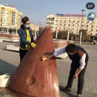 “Birgemiz: жалпы ұлттық волонтерлік жобасының «Asyl Mura» бағыты бойынша “Махамбет-Исатай” алаңында “Statue Upgrade 2” шарасы өтті