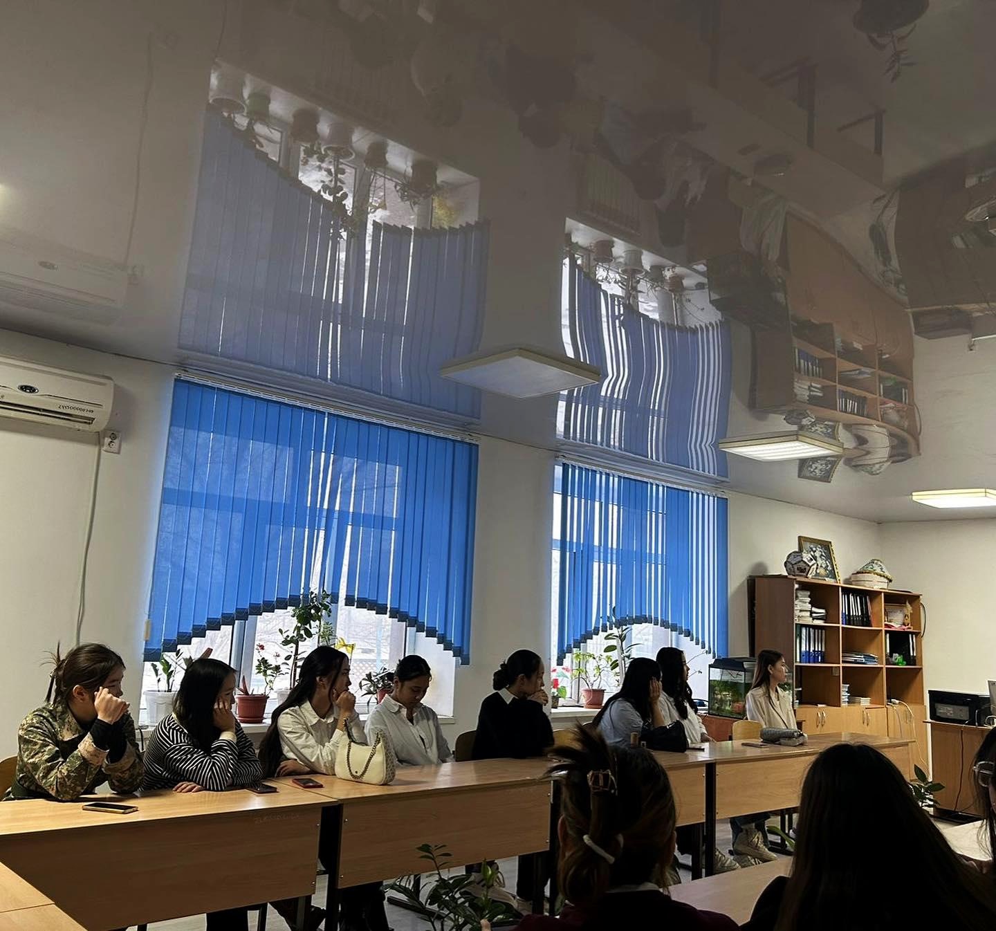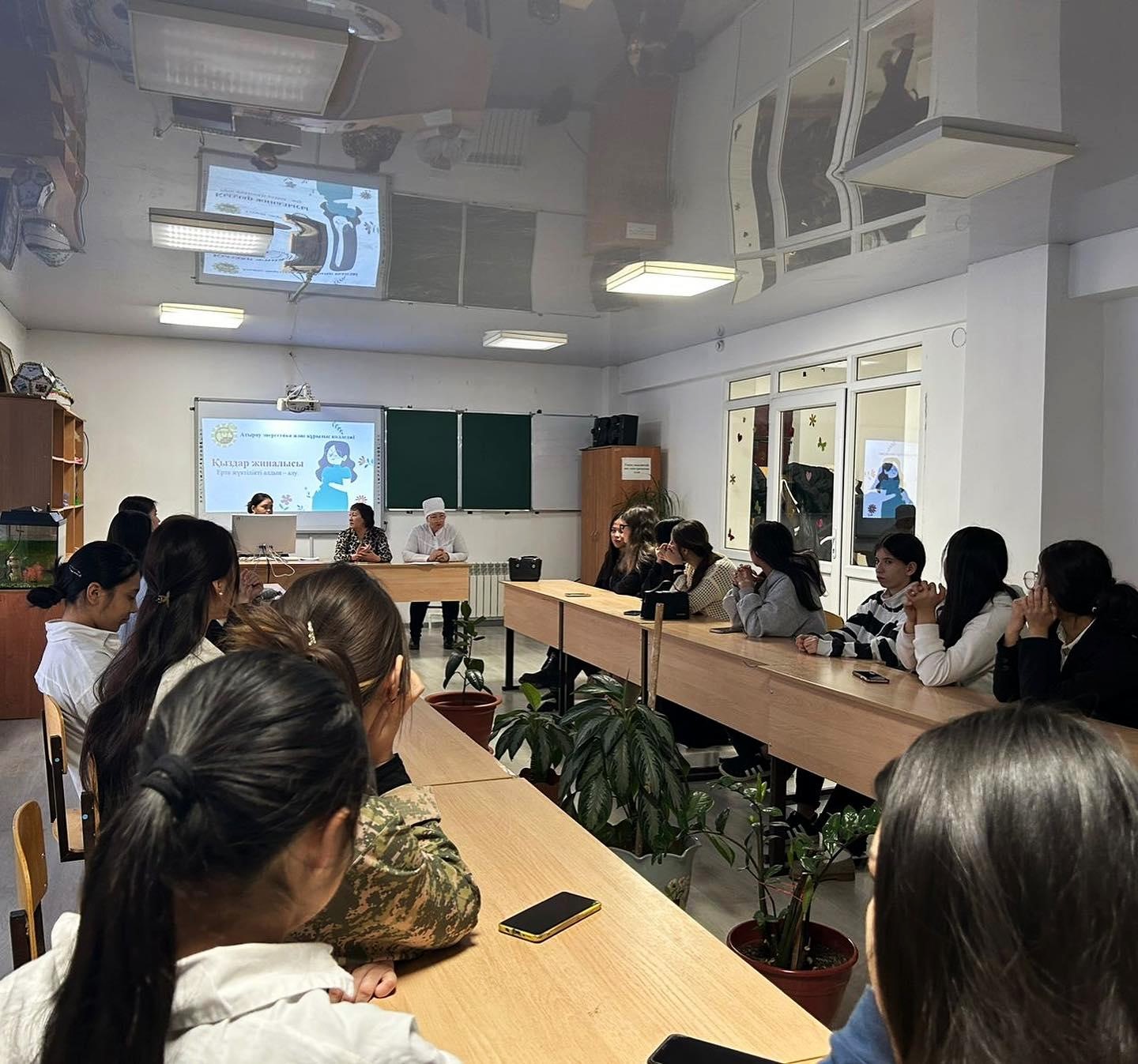 2024 жылдың 15 ақпанында колледж медбикесі Есенғалиева Б., колледж әлеуметтік педагогы Нығметова Э.Қ., колледж психологы Нұртазаева Қ.Ж. ұйымдастыруымен “Ерте жүктілік және оның жасөспірім қыз балалардың денсаулығына зияны” тақырыбында жалпы қыздар жиналысы өтті.
