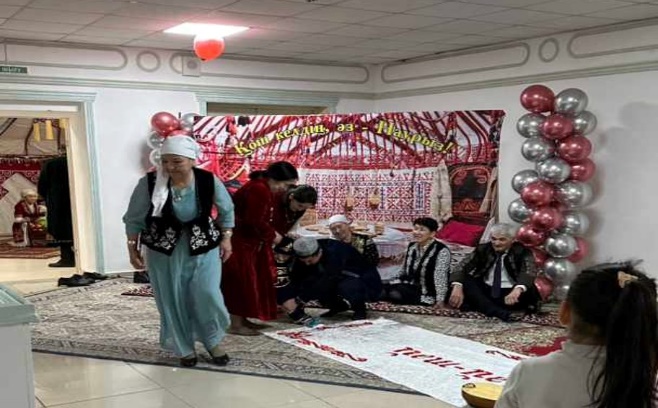 Шара барысында әндер шырқалып, әжелеріміз арасында байқаулар ұйымдастырылып, жыр – термелер айтылып, күйлер шертіліп, салт – дәстүрден қойылымдар қойылып, колледждің кәсіподақ ұйымының сый – сияпаттар табыс етілді.