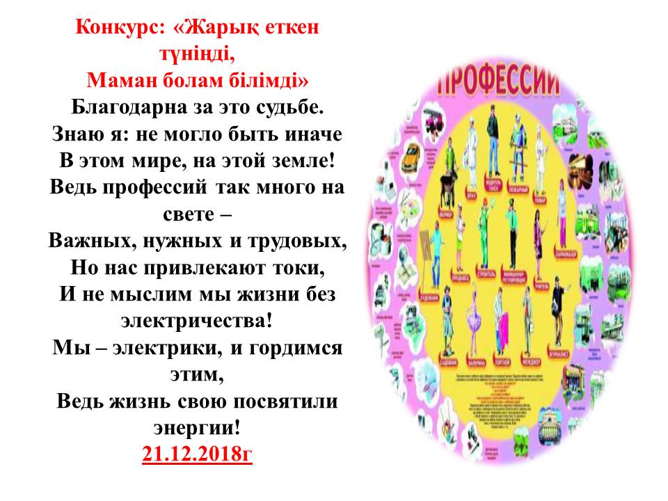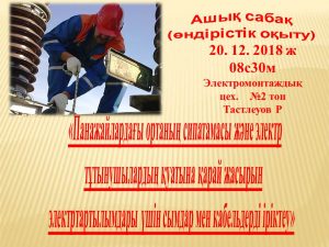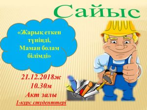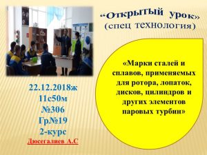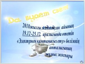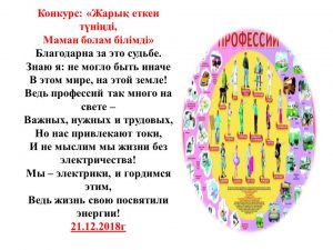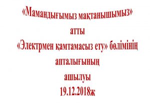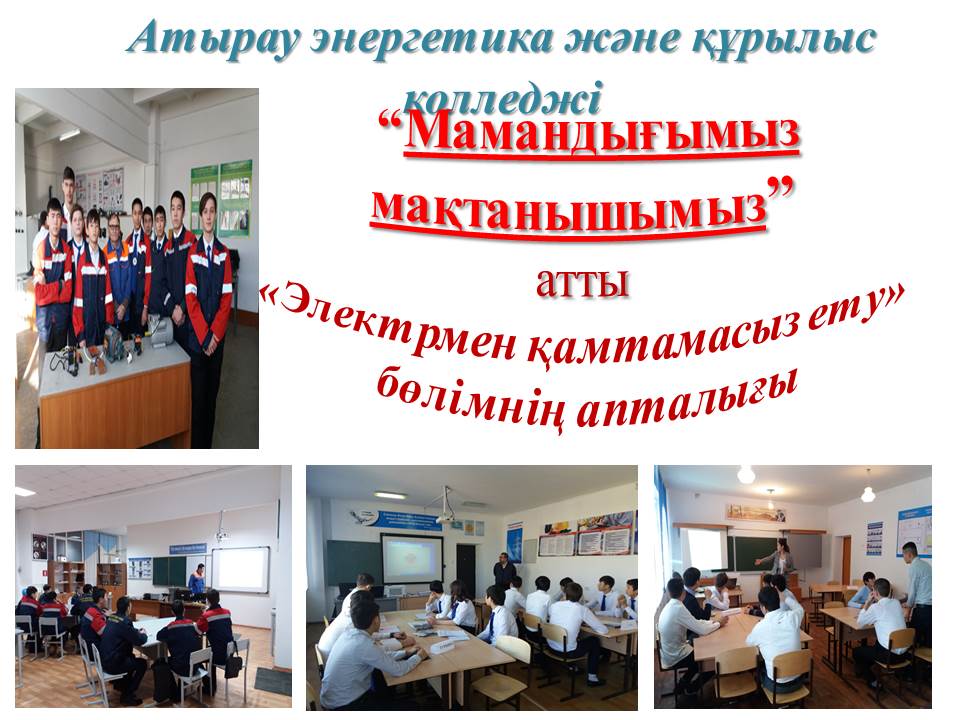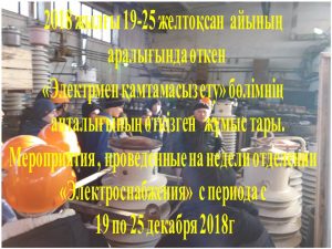 «Электрмен қамтамасыз ету» бөлімінде 2018 жылдың 19-26 желтоқсан аралығында «Мамандығым-Мақтанышым» атты апталық өтті.