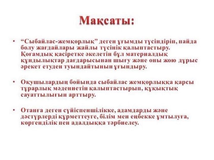 Жастар сыбайлас жемқорлыққа қарсы!