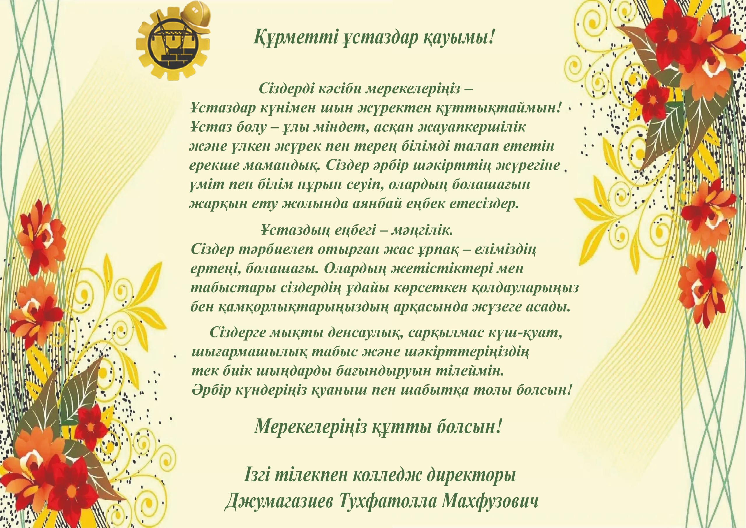 Құрметті ұстаздар қауымы!