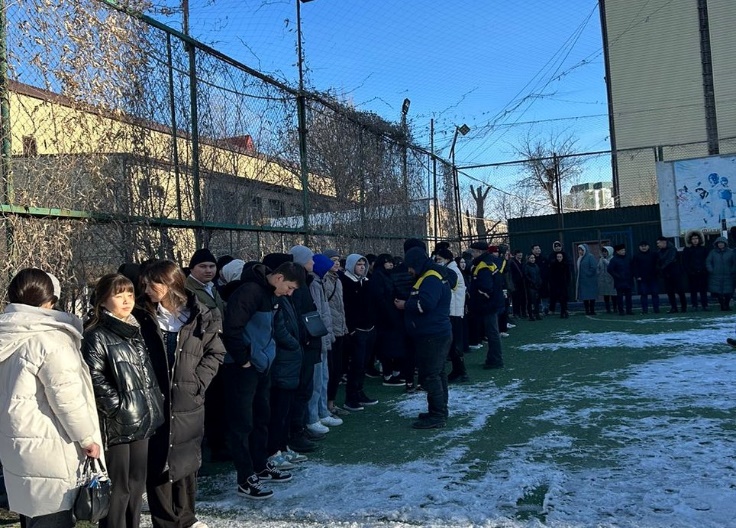 Колледж ғимаратында ауласында өткізілген сейсмикалық жаттығу кезінде 400 студент ,60 мұғалім және 15 жұмысшы қамтылды.