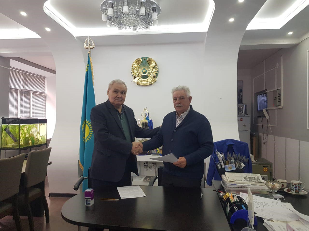 «Атырау энергетика және құрылыс колледжі» КМҚК директоры Темірташев Нұрғали Құмарұлы «Альянс-БиКоммерц» жауапкершілігі шектеулі серіктестігінің басшысы Гончаров Геннадий Петрович пен өзара ынтымақтастық туралы Меморандумға қол қойды.