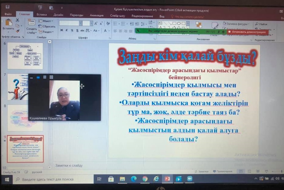 Онлайн вебинардың мақсаты: Студенттерге құқық бұзушылығын алдын алу және .Қылмыс пен жаза тұралы түсінік қалыптастыру. Студенттерімізге құқықтық сауаттылығын арттырып, құқық бұзушылық және қылмыс белгілерімен, түрлерімен таныстыру, жасөспірімдердің құқықтары мен міндеттерімен ұғындыру. Қоғамның заңдары мен нормаларын орындауға, құқықтары біліп оны құрметтеуге тәрбиелеу болып табылады.