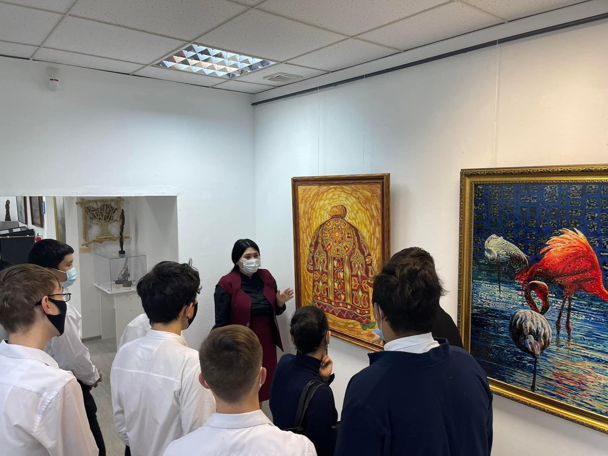 Во время экскурсии студентам было интересно познакомиться с картинами художников из фонда музея, а также с работами прикладного искусства. Экскурсию провела экскурсовод М.Болатова.